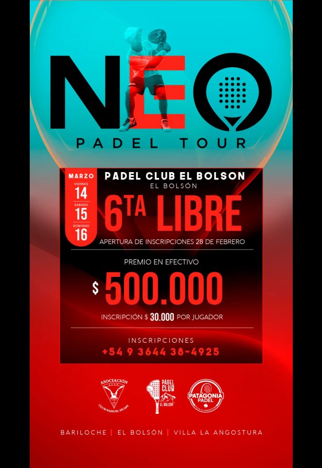 »» Evento: 6TA LIBRE EL BOLSON PADEL CLUB »» Localidad: El Bolsón »» Fechas: 14/03/2025 al 16/03/2025
